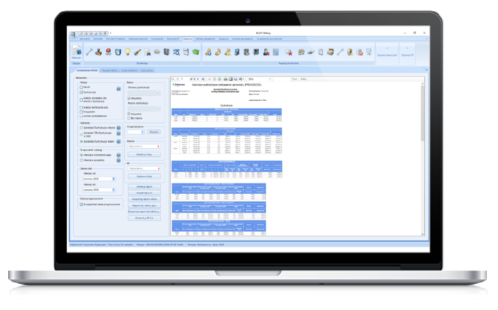 - Rozliczenia na podstawie zużycia i prognoz – możliwość rozliczania odbiorców zarówno na podstawie rzeczywistego zużycia, jak i prognoz indywidualnie konfigurowanych dla każdego punktu poboru.